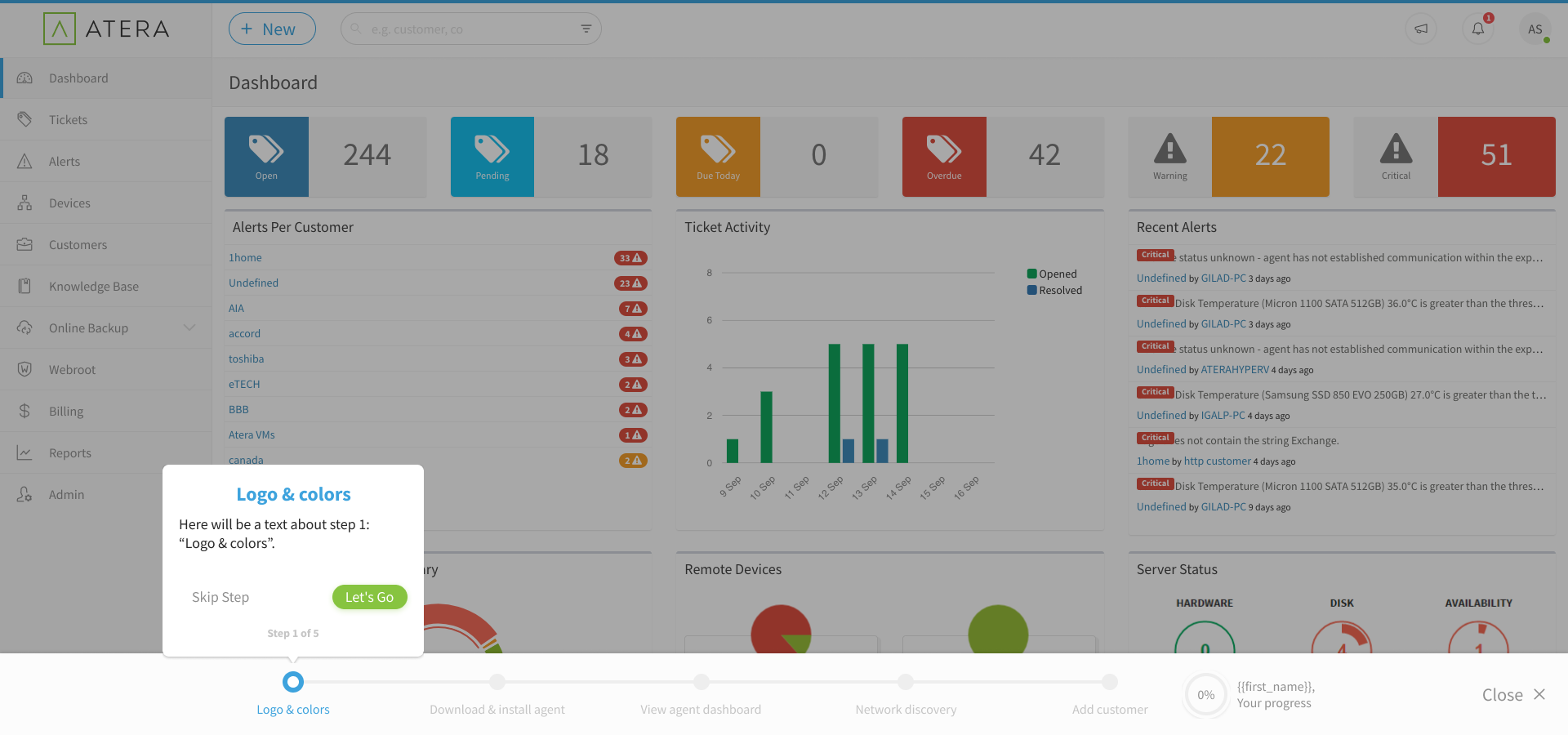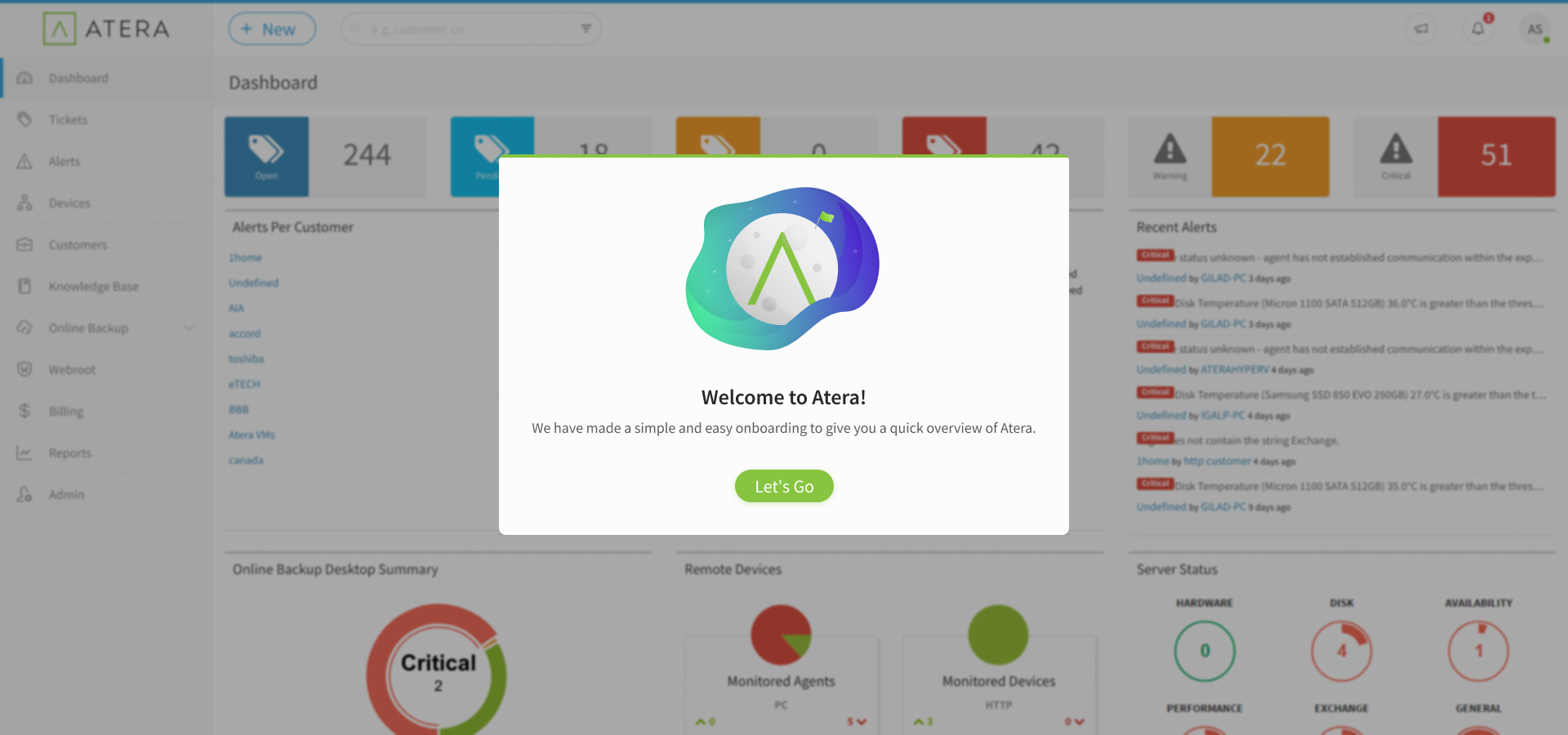 Our service to Atera included redesigning their entire web app, with the goal of creating more efficient processes within the product.